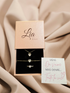 Ce coffret est composé d'un collier, d'une paire de boucles d'oreilles et d'une bague.